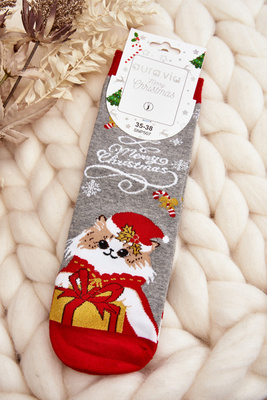 Damskie Świąteczne Skarpety Z Kotkiem Szare