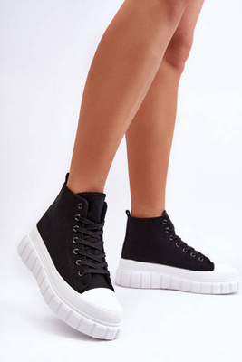 Klasyczne Materiałowe Wsuwane Sneakersy Czarne Gusto