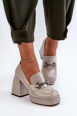Półbuty Lakierowane Damskie Na Słupku Szare D&A MR38-906
