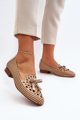 Mokasyny Damskie Z Kokardą Beżowe Reece