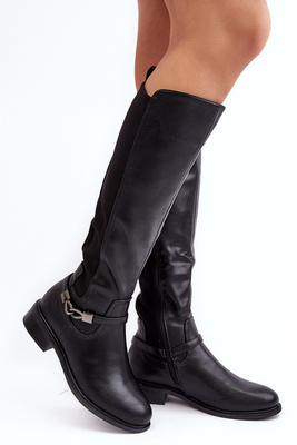 Damskie Botki Na Płaskim Obcasie Z Klamrą Czarne Cillolis