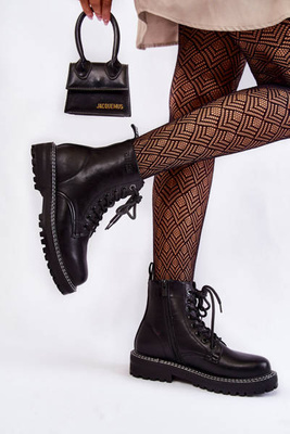 Damskie Botki Na Platformie Big Star KK274538 Czarne