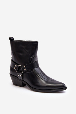 Skórzane Botki Damskie Na Niskim Słupku Z Klamrą Czarne Liliane