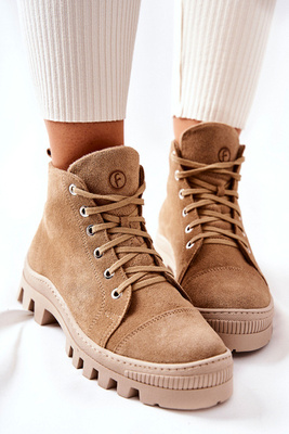 Zamszowe Botki Workery Lewski Shoes Wiązane 3069 Piaskowe