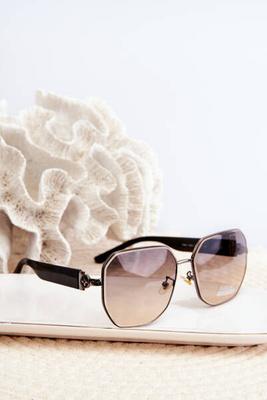 Damskie Okulary Przeciwsłoneczne Z Brokatowymi Wstawkami UV400 Brązowo-Złote