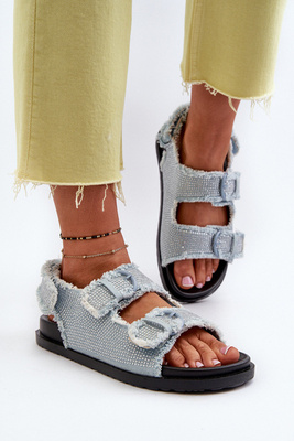 Jeansowe Zdobione Sandały Damskie Niebieskie Irmale