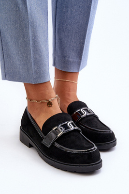 Zazoo 3419 Mokasyny Damskie Zamszowe Z Ozdobnym Paseczkiem Czarne