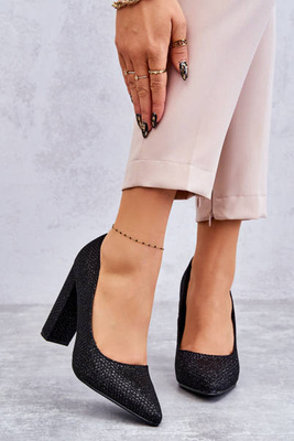Błyszczące Czółenka Na Słupku Czarne Elmira