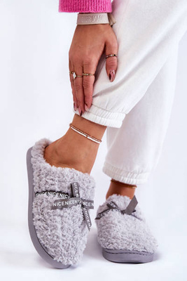 Damskie Futrzane Papcie Z Kokardką Szare Ryana