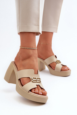 Zazoo 40419 Skórzane Klapki Damskie Z Wycięciami I Ozdobą Beżowe