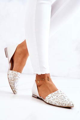 Skórzane Ażurowe Sandały Lewski Perłowe 3049 Białe