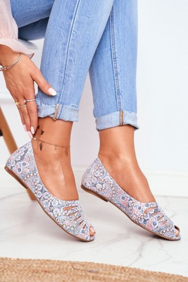 Baleriny Damskie Maciejka Skórzane Biało Niebieskie we wzory 03497-13