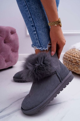 Damskie Botki Śniegowce Ocieplane Futerkiem Skóra Zamsz Szare Memento