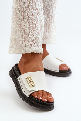 Zazoo 50101 Klapki Damskie Skórzane Na Platformie Białe