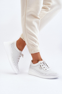 Zazoo 3081 Skórzane Trampki Damskie Na Koturnie Białe