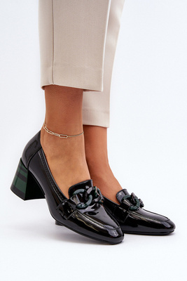 Lakierowane Czółenka Na Klocku Czarne Ilvanna