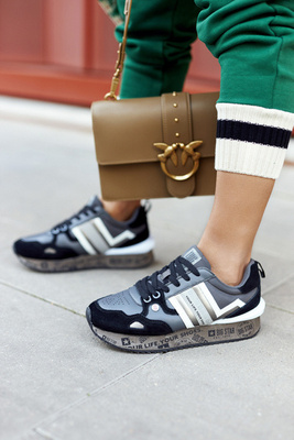 Skórzane Sportowe Buty Sneakersy Czarno Srebrne Minor