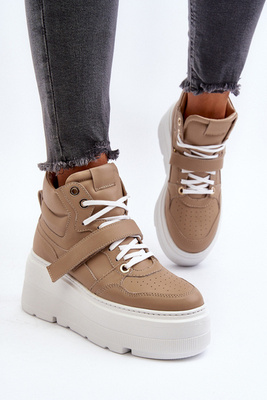 Zazoo 3081 Skórzane Trampki Damskie Na Koturnie Beżowe